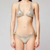La luminosità del lurex è il dettaglio di questo slip da abbinare al top in coordinato per un completo ultra chic. Perfetto anche per i tuoi outfit serali estivi, sotto bluse e top leggeri da quali può rivelarsi in trasparenza.