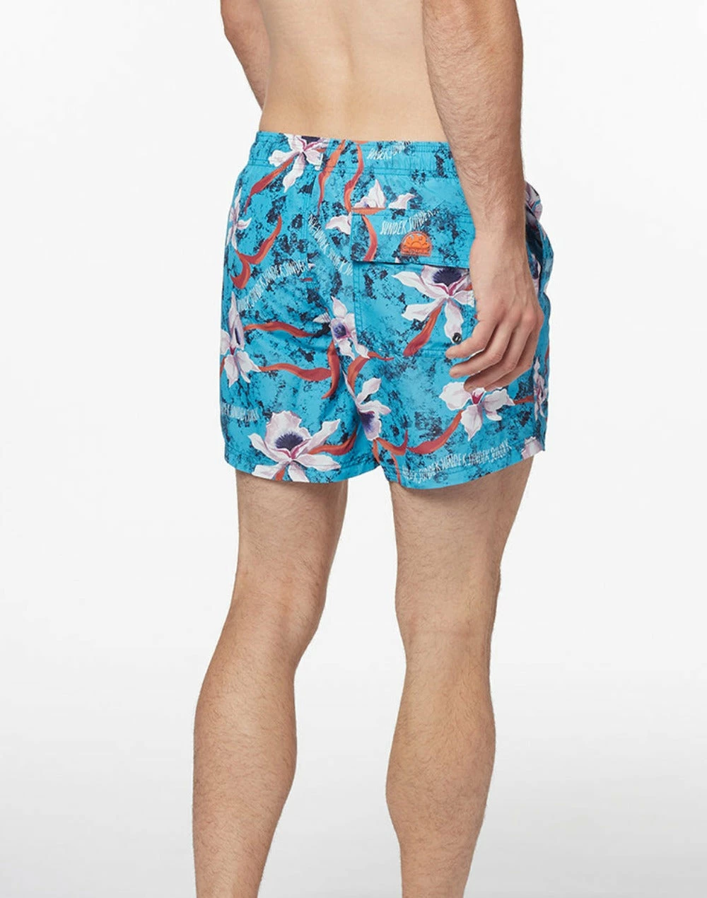Pronti a cavalcare la prossima onda con questo costume da bagno uomo corto a vita elasticata e stampa or-kiddy, dai toni hawaiani. Realizzato in leggero poliestere riciclato, garantisce aderenza e comfort grazie alla presenza della coulisse e dell’elastico in vita. Lunghezza 14”/35 cm (in taglia M).