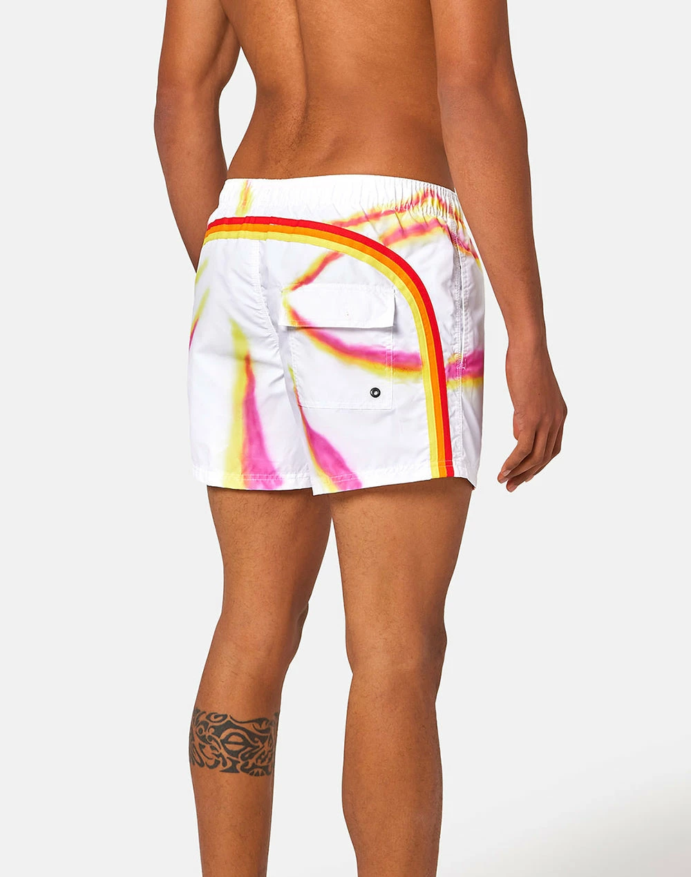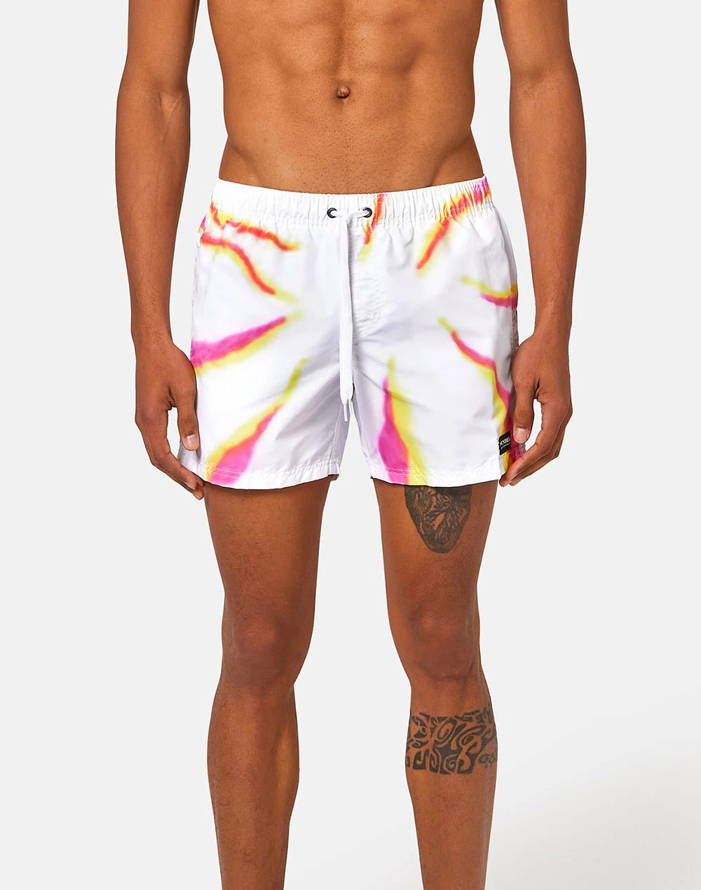 Boardshort con speciale lavorazione tie-dye, trattato e tinto con tecniche artigianali. Il tessuto storico e la costruzione del modello lo rende super resistente stagione dopo stagione.