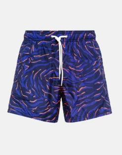 Costume da bagno corto a vita elasticata con vivace stampa. Dotato di tasche laterali e tasca posteriore con velcro. Leggero e resistente, si asciuga in maniera veloce per offrirti una comodità ottimale. Lunghezza esterno coscia 14”/ 35 cm (in taglia M).