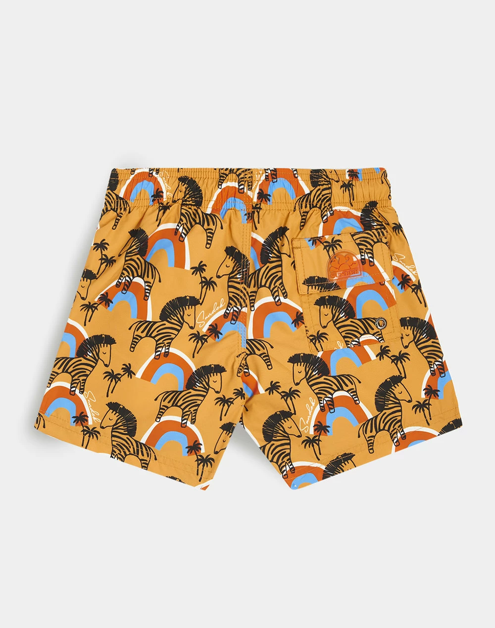 Colori intensi e tessuto iper-confortevole in poliestere riciclato per questi pantaloncini mare bimbo. Un modello che accompagnerà il bambino nelle sue mille attività in vacanza, perfetto per muoversi e giocare in piena libertà. Realizzato con stampa tropical safari, è da mettere in valigia, anno dopo anno.