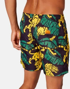 La stampa Hidden Tiger è protagonista assoluta di questo costume boxer uomo in poliestere riciclato amico dell’ambiente.