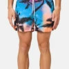 Preparati a cavalcare la prossima onda con il costume da bagno corto a vita elasticata con speciale stampa a fantasia hibiscus. Grinta e carattere convivono in questo modello dalla vestibilità a vita bassa, realizzato in nylon con trattamento stone wash effetto vintage.