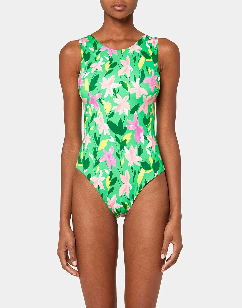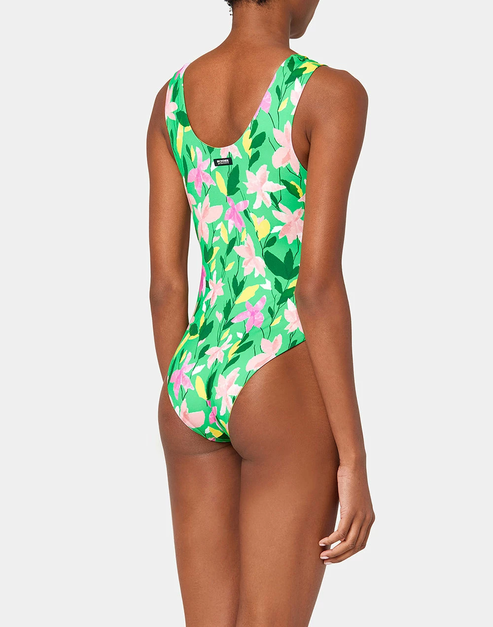 Costume intero dalla linea minimal, un classico intramontabile con spalline larghe e scollatura quadrata poco profonda.