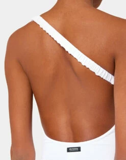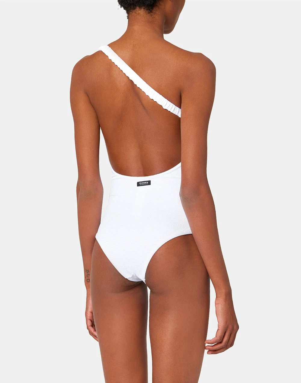 Silhouette valorizzata grazie al costume intero monospalla con spallina diagonale arricciata ed elastica. E’ realizzato in tessuto piquet ecosostenibile confortevole e dall’aspetto sofisticato.