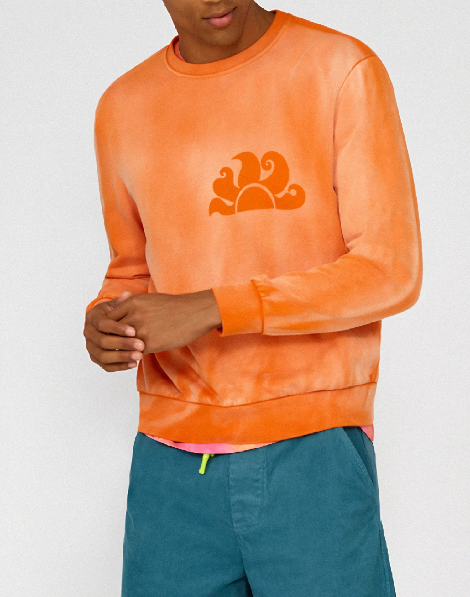 Felpa ampia e confortevole in cotone, trattata con rifinitura effetto scolorito. Perfetta per un look vintage, con logo stampato sul petto. Vestibilità regular.