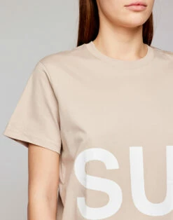 Maxi t-shirt in cotone organico con collo tondo e grande logo décor Sundek stampato a contrasto davanti e dietro Indossa la tua maxi t-shirt sopra il costume, come un abito, e sei pronta per la spiaggia, oppure abbinala ai tuoi capi casuale per un look informale arricchito dal carattere del big logo Sundek stampato a contrasto.