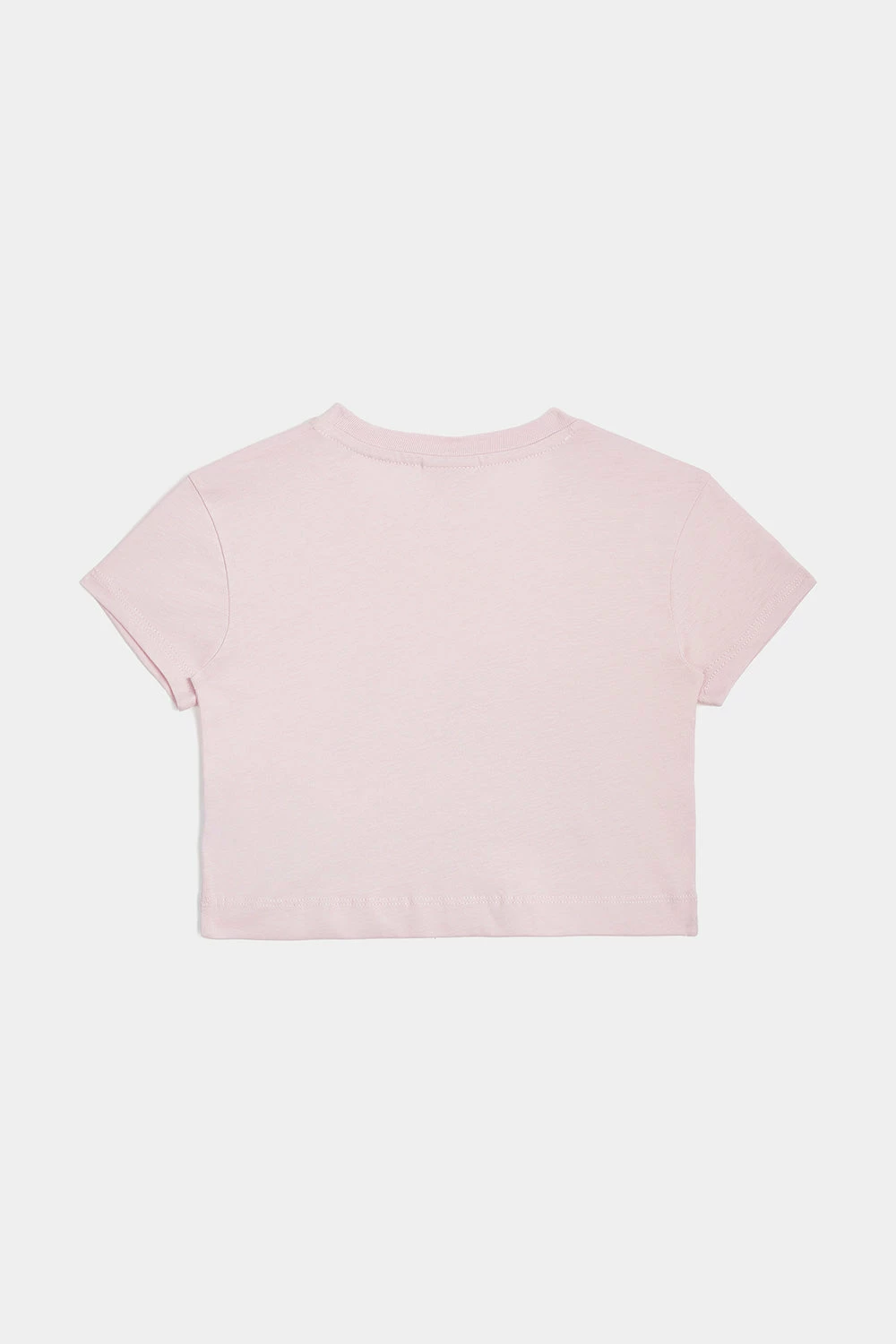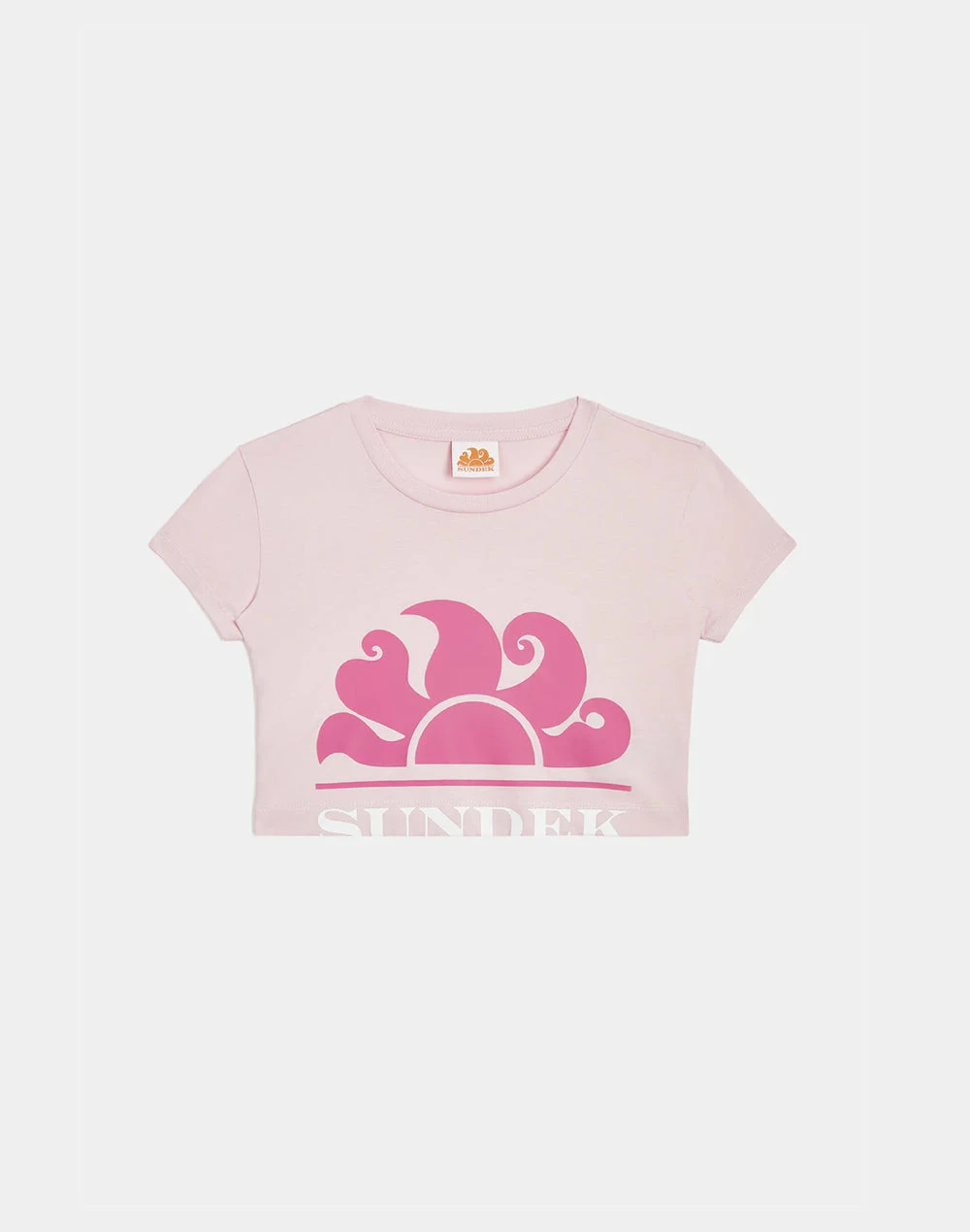 T-shirt bambina crop da indossare sopra jeans o gonne. Modello immancabile per il guardaroba della Primavera Estate 2023.