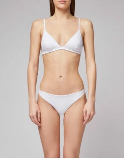Tessuto doppiato leggerissimo e confortevole per questo top a triangolo con spalline sottili da regolare come vuoi.