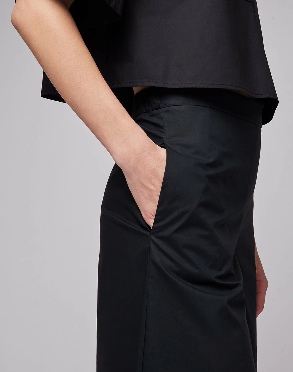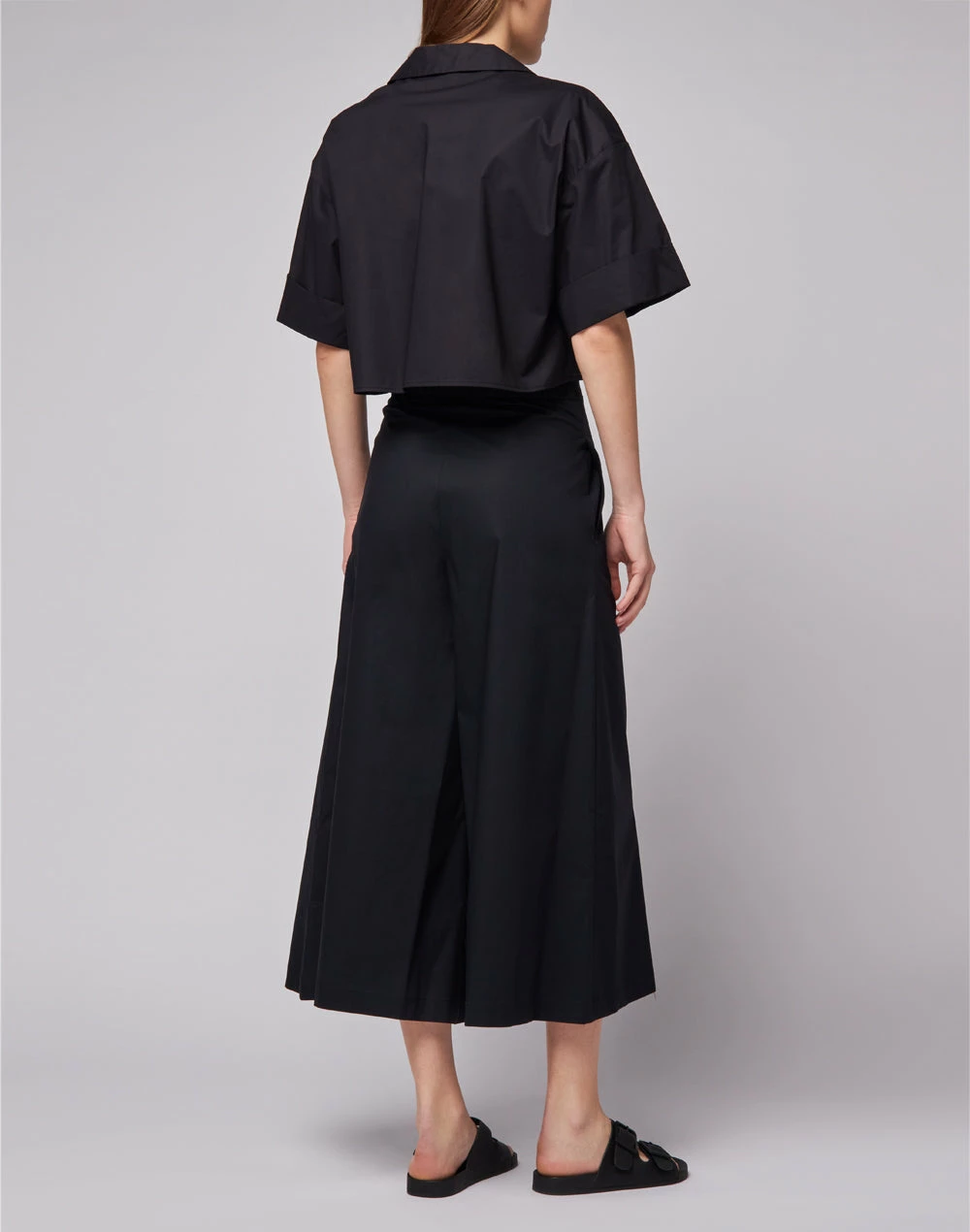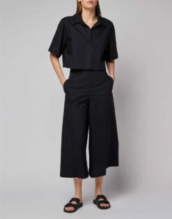 Pantaloni palazzo a vita alta in cotone popeline.