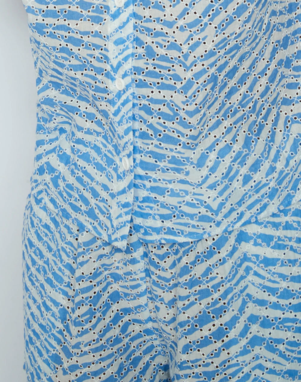 L’eleganza del sangallo per look raffinati. Scopri gli shorts con tasche e fantasia zebrata. Facili da indossare e perfetti da abbinare alla camicia in coordinato.