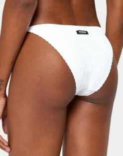 Slip tanga da abbinare al top in coordinato per creare un bikini iper femminile, morbido e confortevole, dall’aspetto leggermente increspato dato dalla lavorazione a rilievo del filato.