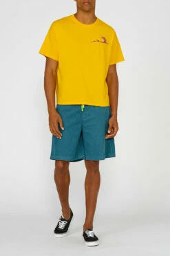 Un ricamo a forma di onde per portare l’estate con te ovunque, in viaggio o nel tuo quotidiano. La t-shirt da uomo realizzata in morbido cotone jersey presenta una vestibilità boxy, corta, ma larga e abbondante, perfetta per innumerevoli abbinamenti.