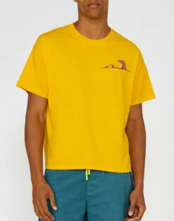 Un ricamo a forma di onde per portare l’estate con te ovunque, in viaggio o nel tuo quotidiano. La t-shirt da uomo realizzata in morbido cotone jersey presenta una vestibilità boxy, corta, ma larga e abbondante, perfetta per innumerevoli abbinamenti.