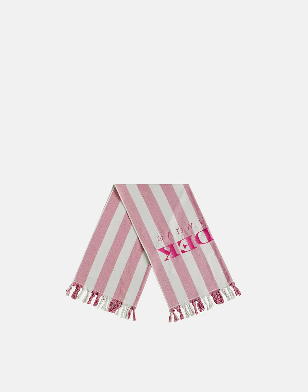Telo mare fouta jacquard con maxi logo ricamato a contrasto con righe verticali e fondi con frange intrecciate