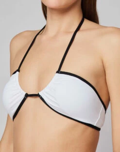Scopri questo elegante top a fascia regolabile con i laccetti centrali da annodare al collo. Perfetto per valorizzare spalle e collo e per giocare con più stili diversi. Da abbinare allo slip in coordinato, venduto separatamente.