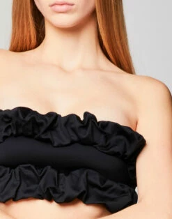 Mostra il tuo lato più romantico con questo bikini top a fascia con rouches. Indossalo anche sopra un pantalone o una gonna, per ottenere uno stile ricercato anche al di fuori della spiaggia.