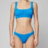 Top a triangolo inverso con stampa Sense Flower, regolabile con i laccetti centrali da annodare al collo. Da abbinare allo slip in coordinato per comporre un bikini elegante e sempre attuale.