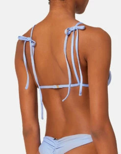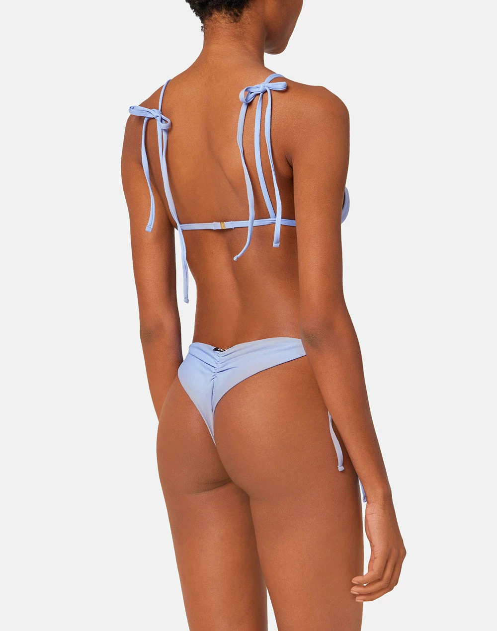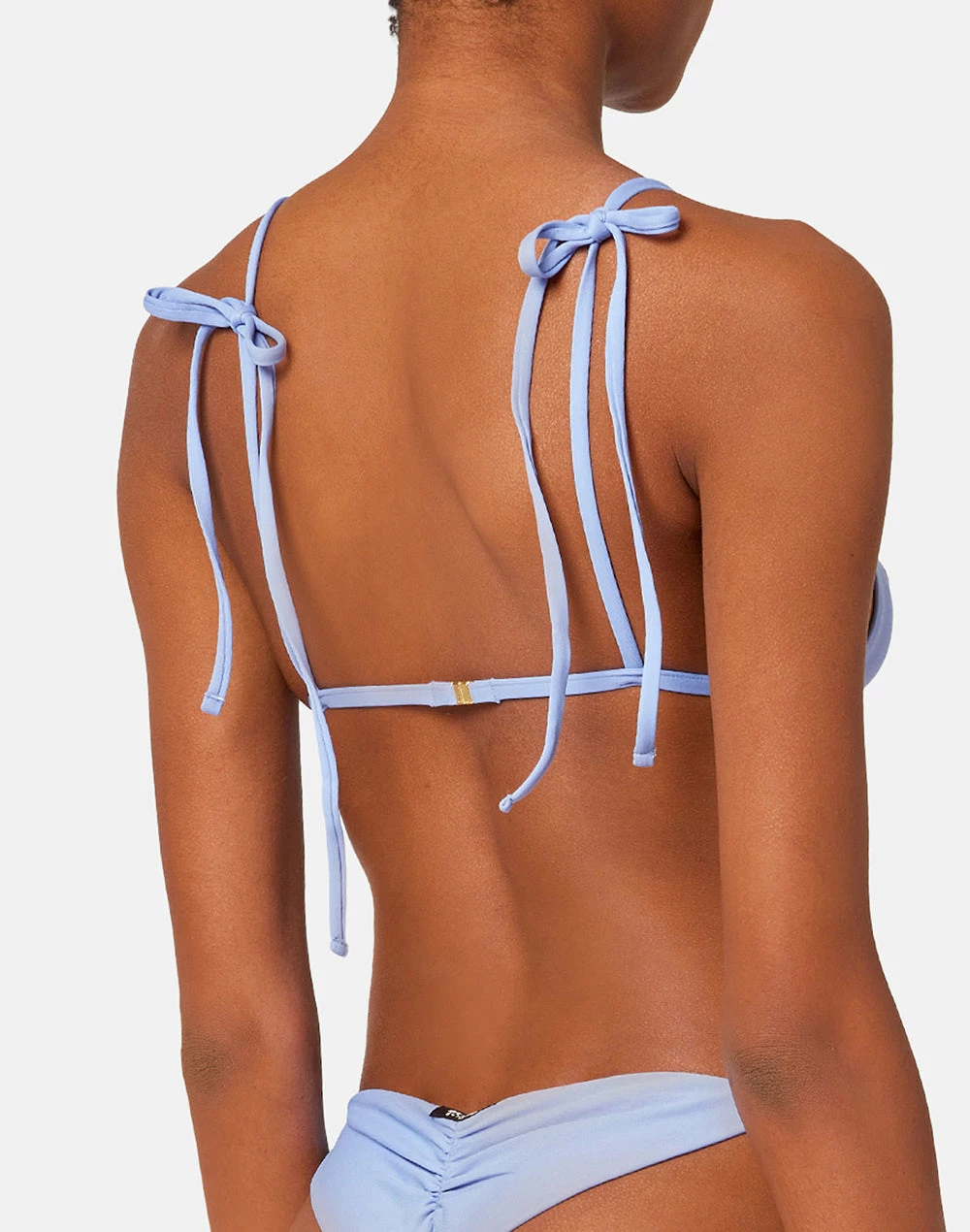 Top a triangolo incrociato e pinces sulle coppe e spalline sottili che puoi regolare come vuoi annodandole a fiocco sulle spalle. Puoi abbinarlo allo slip in coordinato.
