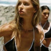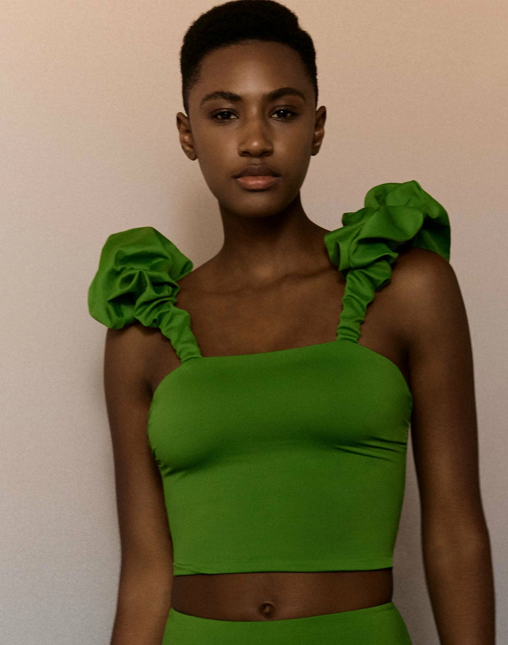 Non passerai inosservata con questo modello di bikini top che riprende il design di una canotta, dandogli però un tocco chic. Il bikini è arricchito infatti dalle spalline con rouches, d’impatto ed eleganti. Mostra il tuo lato più romantico e indossa questo top anche al di fuori della spiaggia, per un evento o un’occasione più formale.