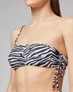 Top monospalla con coulisse e fantasia tropic zebra. Da abbinare allo slip in coordinato.